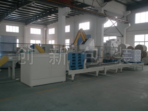 該系列產品由自動上袋系統、定量自動包裝機、封口裝置、輸送機、倒包機構、重量復檢機、剔除機、整形機、噴碼機、碼垛機器人、托盤庫、滿垛整形機等設備組成,可以完成粘性粉體、超輕細粉體及普通物料的全自動定量包裝碼垛生產。該生產線可進行紙塑復合包裝袋、全紙包裝袋、全塑包裝袋等不同材質的閥口、敞口包裝袋包裝生產。服務的行業涵蓋了食品、化工、建材、顏料、礦產等定量包裝、自動碼垛領域,經國家質監部門檢測,該生產線包裝精度高、無粉塵污染、自動化程度高、碼垛速度達1000包/小時以上。
