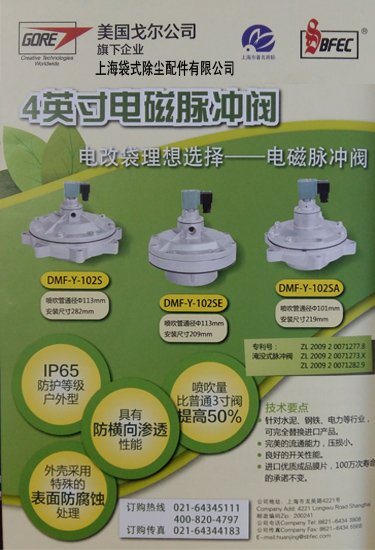 上海袋配4英寸淹沒式電磁閥具有3英寸閥的外形結(jié)構(gòu),4英寸閥的噴吹效果,更大噴吹面積,增加您選擇的范圍,噴吹量比普通3寸閥提高50%。專為替換102MM進口產(chǎn)品而設計,IP65防護等級戶外型。外殼采用特殊的表面防腐蝕處理,具有防橫向滲透性能。4英寸淹沒式電磁閥,是您電改袋的首選。
