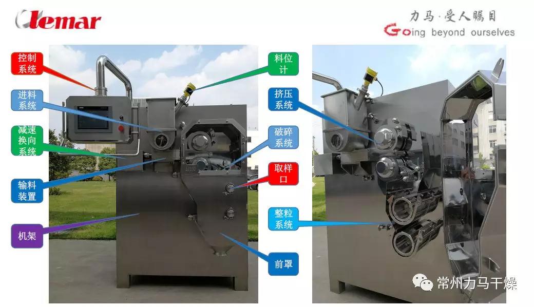 LG-200干法制粒機是力馬精心研發的一款技術性能領先、經濟環保型產品,設備占地少、節能環保,易于拆卸清洗,是大批量制粒的理想生產設備,設備主要由以下部分組成:進料系統;減速變向系統;輸料裝置;擠壓系統;整粒系統;前罩;機架;檢修門;控制系統;液壓系統;氣路系統;水冷系統。