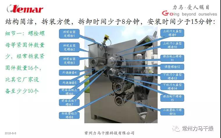 4、壓輪的間隙可調,使壓片密度一致,制粒均勻;