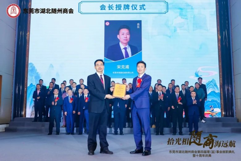 2024年11月22日下午,東莞市湖北隨州商會第四屆理(監(jiān))事會就職典禮暨十周年慶典,在東莞市康帝國際酒店隆重舉辦。在這次主題為“拾光相隨,商海遠航”重大盛會上,瑯菱智能集團董事長宋克甫先生被推選為新任會長,正式就職為第四屆理(監(jiān))事會主席,并發(fā)表了熱情洋溢的講話。此次慶典是東莞市湖北隨州商會發(fā)展的重要里程碑,不僅是對過去十年成績的回顧與總結(jié),更是對未來發(fā)展的展望和規(guī)劃。