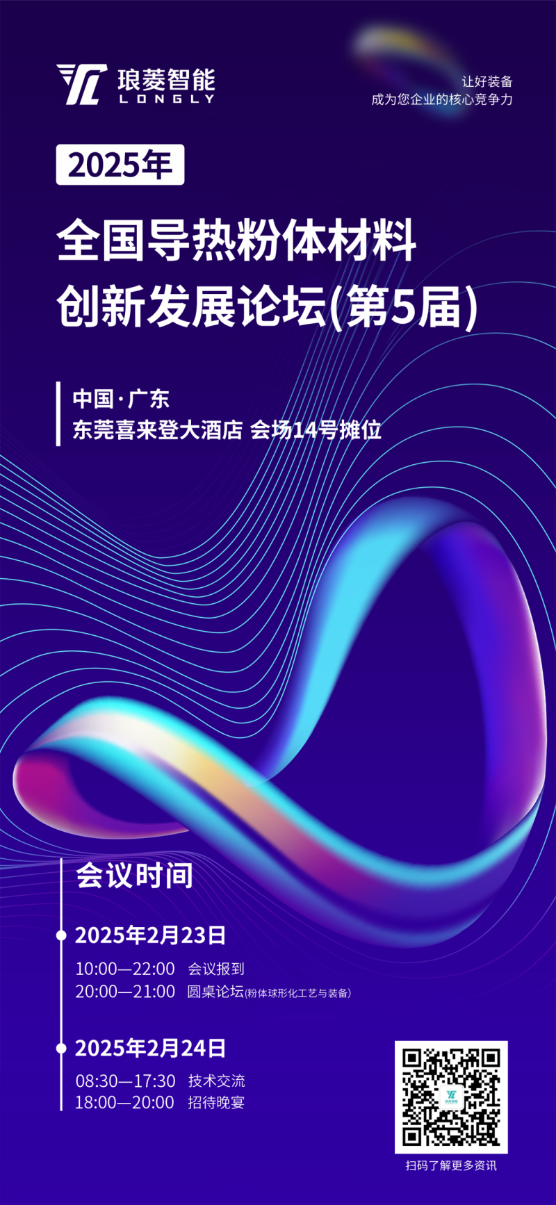 2月23-24日,2025年全國導熱粉體材料創新發展論壇(第5屆)將在中國?廣東東莞喜來登大酒店舉辦,瑯菱智能將在會場14號展位精彩亮相。