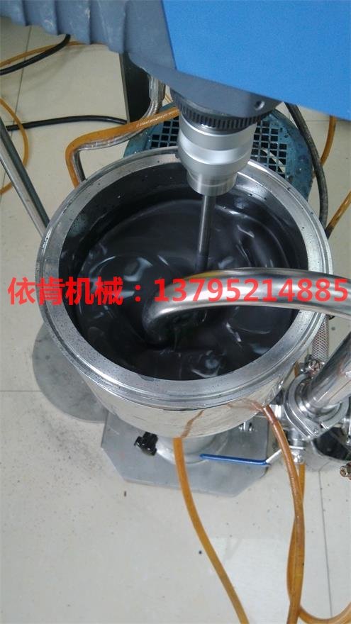 石墨烯/碳納米管復合導電漿料的制備設備就屬上海依肯機械改進型膠體磨最合適,該機特別適合于需要研磨分散均質一步到位的物料。主要由兩層分散頭構成,工作時,物料通過投料口進入分散腔,首先到達層分散頭進行處理,由于馬達帶動轉子齒列高速運轉,產生渦流和離心力效應使得物料軸向吸入分散頭,然后沿著定-轉子之間的縫隙被高速壓出完成次剪切作用,之后在轉子齒列與定子齒列的強力剪切間隙中物料被強烈撕裂后從定子齒列縫隙中流出時完成第二次剪切,接著流出的物料進入第二層分散頭腔體,對處理過的物料再次進行剪切(原理同上),從而確保混合分散獲得很窄的粒徑分布,獲得更小的液滴和顆粒,生成的混合液穩定性更好,滿足生產對于粒徑的要求。