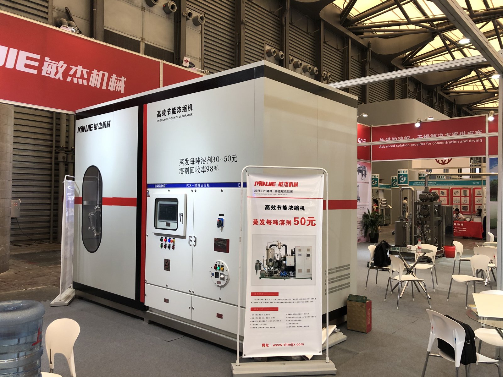 展位上展示的有真空帶式干燥機以及高效節能濃縮機等,尤其高效濃縮機是我們自主研發的新產品。每蒸發一噸溶劑只需要50元。