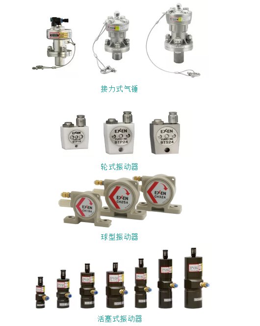 愛科昇產品主要分為建筑機械和產業機械兩大類。產業機械產品主要采用敲擊、振動、噴射三大方法,通過氣、電驅動實現相應方式的自動化,代替人工方式解決物料堵塞問題。我司還致力于為客戶提供有效的破拱助流解決方案。我司生產的接力式氣錘、球型振動器、活塞式振動器等產品在食品、藥品、化學等行業被廣泛應用。
