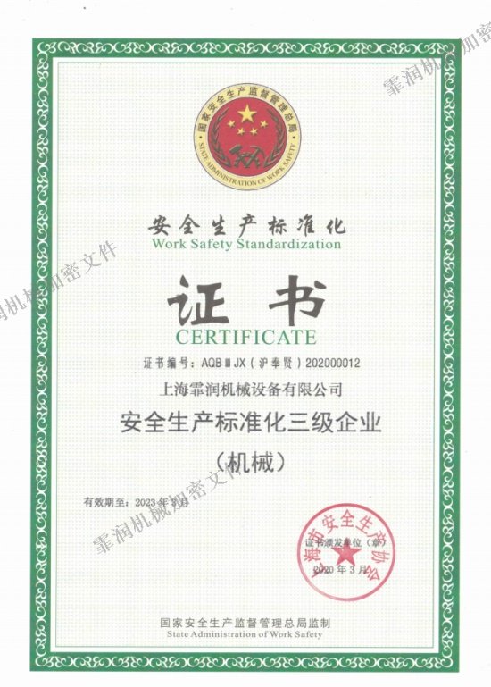 霏潤榮獲國家安全生產標準化三級企業(yè)榮譽證書