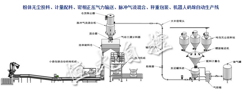 江陰市恒大物料自控系統有限公司專業開發、設計、制造粉體的無塵投料、氣力輸送、計量配料、氣流混合、稱重包裝、碼垛、除塵等成套設備生產線。產品擁有多項發明專利,公司具有多年安裝調試的豐富經驗和交鑰匙工程的能力。