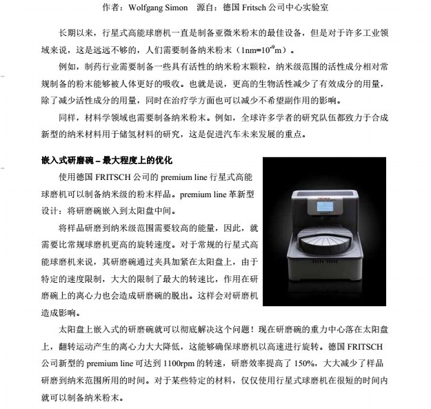 納米粉體制備的最新方法--- 德國FRITSCH公司premium line加強型行星高能球磨機