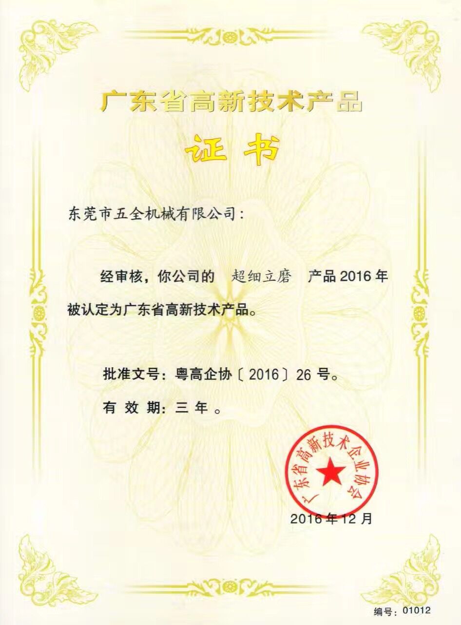 近日,國(guó)內(nèi)知名粉體設(shè)備制造企業(yè)——東莞市五全機(jī)械有限公司傳來(lái)好消息,該公司生產(chǎn)的(超細(xì)立磨)被認(rèn)定為廣東省高新技術(shù)產(chǎn)品。