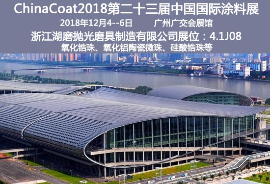ChinaCoat2018第二十三屆中國國際涂料展將移師廣州,定于2018年12月4--6日在廣州廣交會展館舉行。浙江湖磨拋光磨具制造有限公司攜氧化鋯珠、氧化鋁陶瓷微珠、硅酸鋯珠等亮相,期待與您相約湖磨展臺4.1J08。