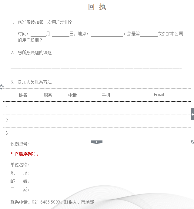 回執填寫完請郵件至:marketing.cn@anton-paar.com,報名回執和郵件標題: 8月24日旋光儀/折光儀用戶培訓 - **公司/機構