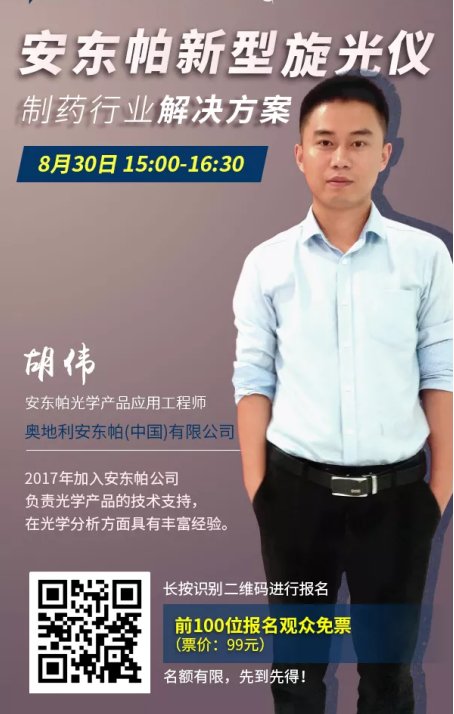 2018年8月30日,安東帕應用團隊將在CPhI制藥在線《制藥大咖說》網絡直播講座中為制藥人帶來安東帕新型旋光儀制藥行業解決方案,介紹安東帕儀器的重要技術特點,突出技術優勢,以及專業的應用介紹和制藥法規要求,用于滿足制藥行業客戶的需求。