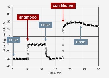 洗發水的使用會立即影響流動電勢,這主要是香波中的陰離子活性劑在頭發上吸附。