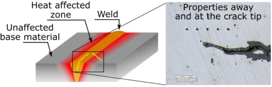 圖1 : 靠近或遠離焊縫裂紋尖端局部區域的儀器化壓痕測試