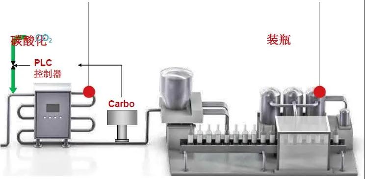 配備文丘里噴嘴的碳酸化系統該傳感器必須安裝在溶解路徑之后,以防止接觸氣泡。