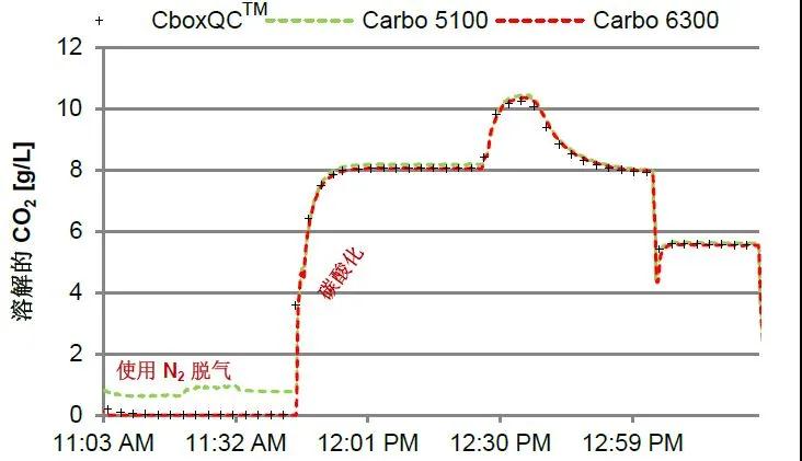 只有安裝在脫氣罐之后和灌裝之前的 Carbo 6300 才能監測到 CO2 含量。Carbo 6300 不受其他溶解氣體的影響
