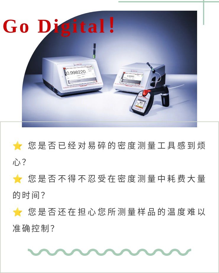 解放您的雙手,讓DMA 501/1001獨立完成準確的密度測量工作!無論是快速恒溫與全范圍黏度修正,還是自動化進樣檢測,亦或是常見的密度濃度換算,這臺緊湊式數字密度計帶給您的便利遠超您的想象!