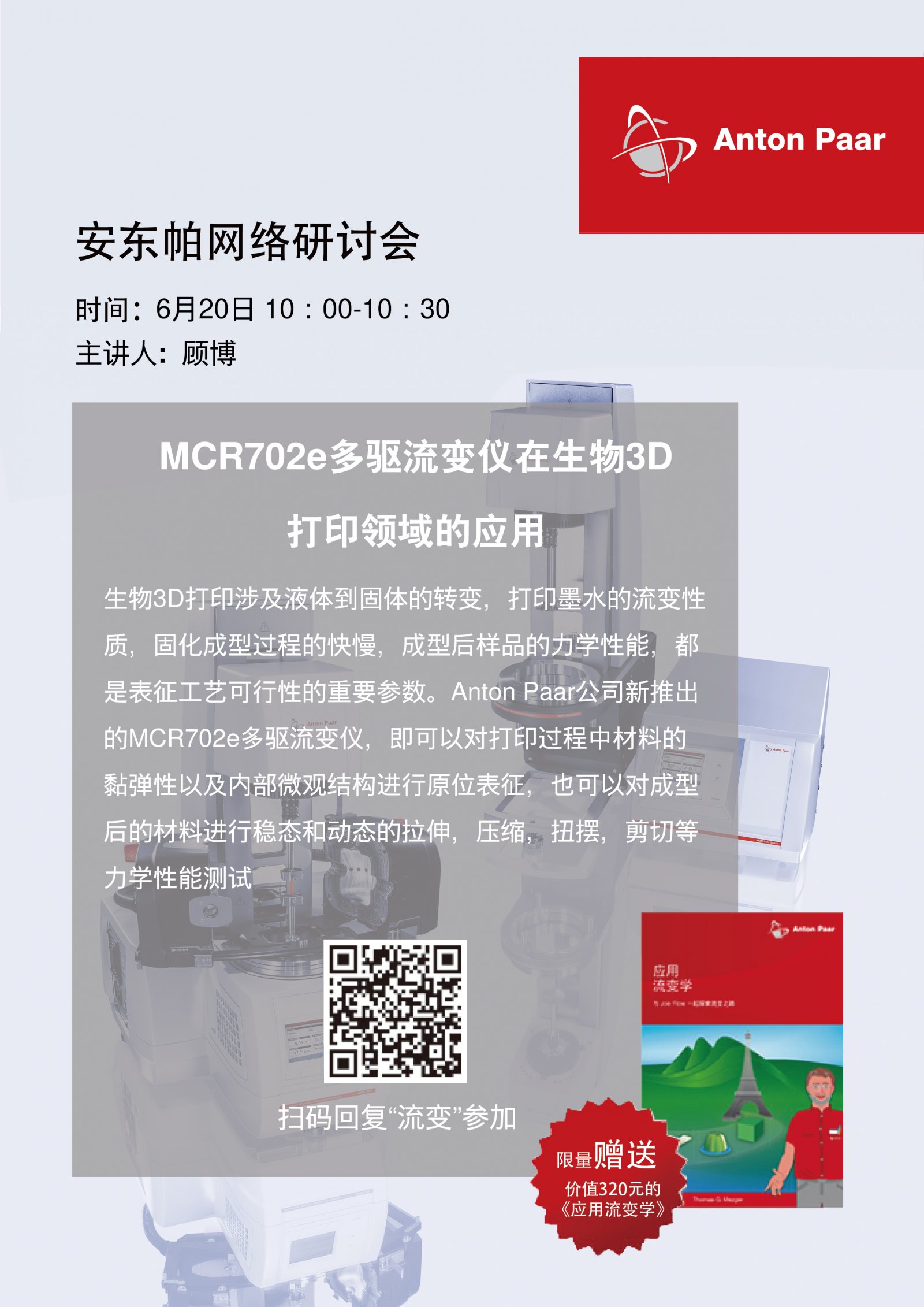 Webinar | 6月20日MCR702e 多驅流變儀在生物3D打印領域的應用