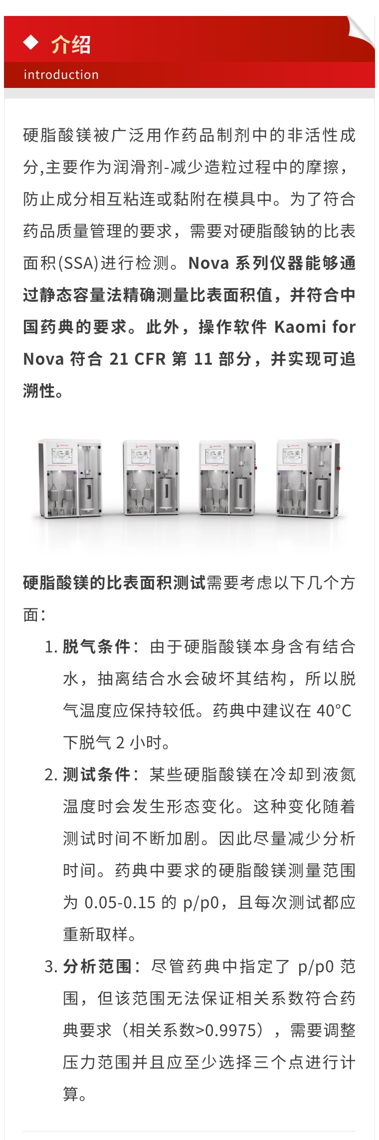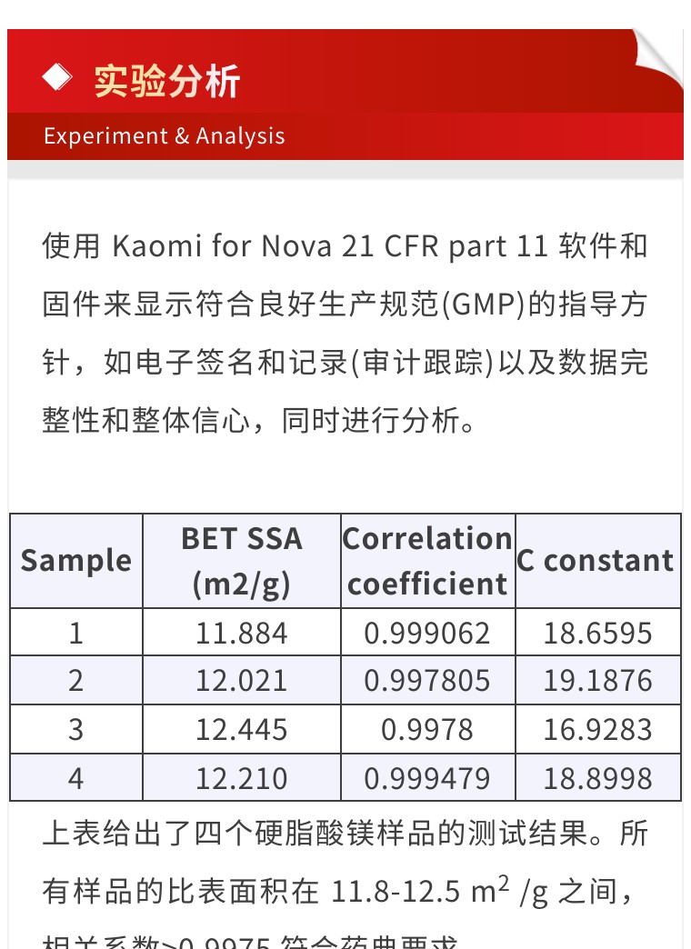 Nova 系列 | 藥品中硬脂酸鎂比表面積測試方法的建立