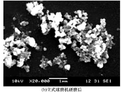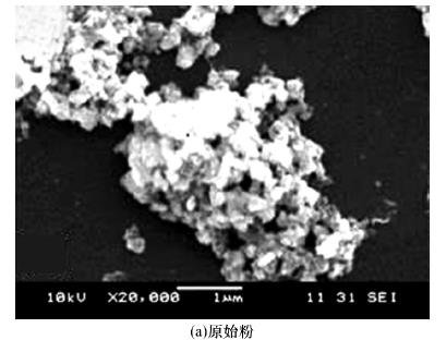 原始氧化鋯粉以及經(jīng)不同研磨設(shè)備研磨后氧化鋯粉體的SEM 照片見3。