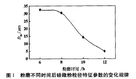 從表3可以看出,粉磨8 h后硅微粉的中位徑D 。