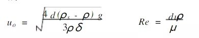 分層是分散相在外力(重力或離心力)作用下,在連續(xù)相中上浮或下沉的結(jié)果。在忽略布朗運動效應(yīng)的靜態(tài)條件下,可用Stokes定律來描述,即分散相球形顆粒由于重力的沉降速度u0由下式確定: