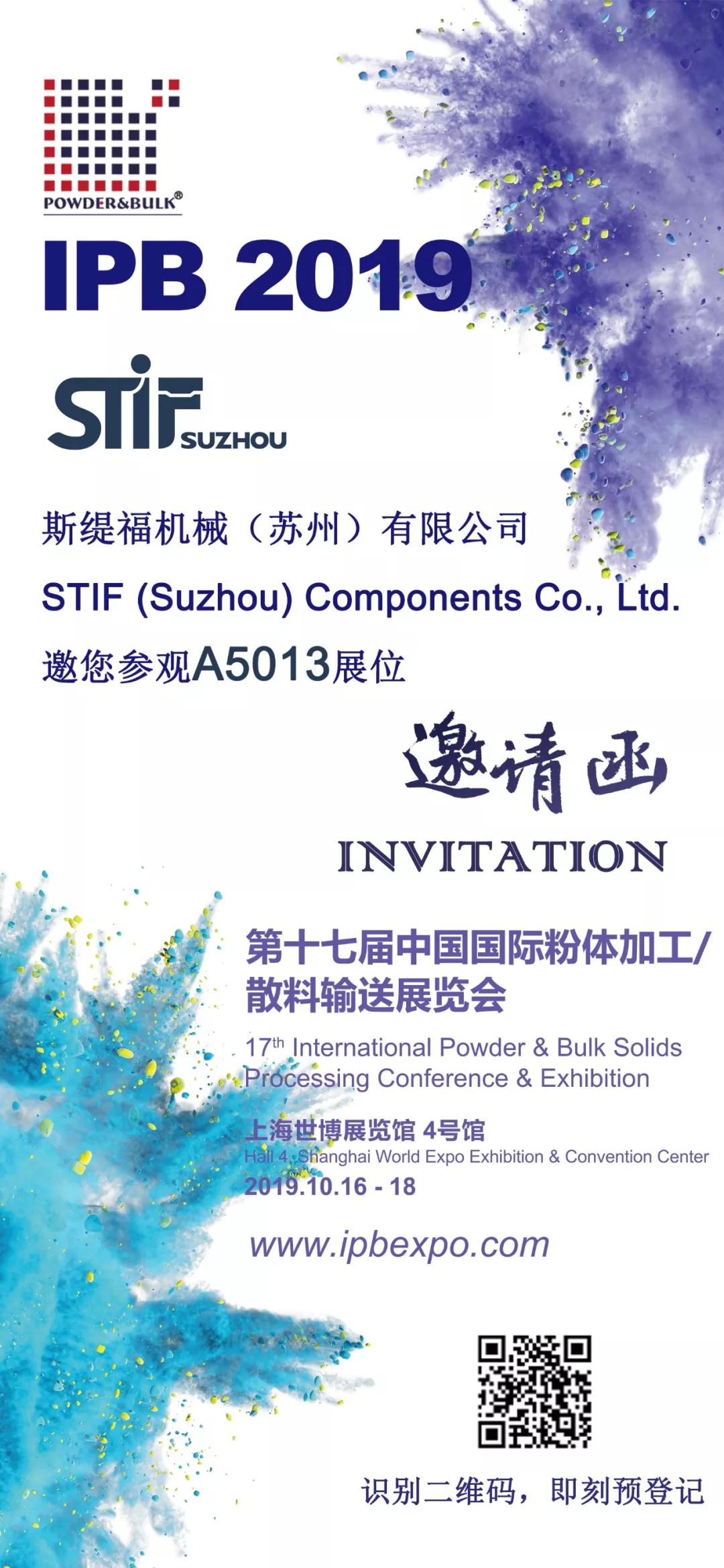 第十七屆中國國際粉體加工/散料輸送展覽會(IPB 2019)定于2019年10月16-18日舉行,來自粉碎、研磨、篩分、干燥、混合、過濾、輸送、包裝、測試、安全防爆等領域的200家粉體展商齊聚上海世博展覽館。