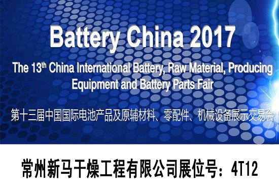 第十三屆中國國際電池產(chǎn)品及原輔材料、零配件、機械設備展示交易會(Battery China 2017)將于2017 年6 月21-23 日在北京國家會議中心舉行。常州新馬干燥工程有限公司邀請您參加此次盛會。