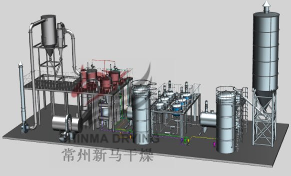 采用閃蒸干燥機對離心脫水后濕基水分15~20%的物料或壓濾脫水后濕基水分25%的物料進行干燥,干燥至0.3%,采用旋風加布袋除塵器收料或單獨布袋除塵器收料。