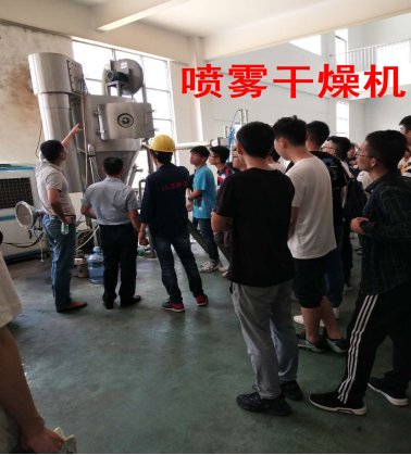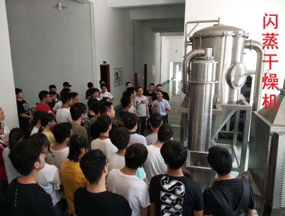 將我們的目光移到參觀車間的同學們這里。在生產主管的帶領下,同學們依次參觀了離心噴霧干燥機、流化床、真空帶式干燥機、烘箱等一些主打產品。參觀期間,生產主管和帶隊老師還對同學們提出的問題做出了耐心細致的講解,使同學們對干燥設備有了一個初步的了解。