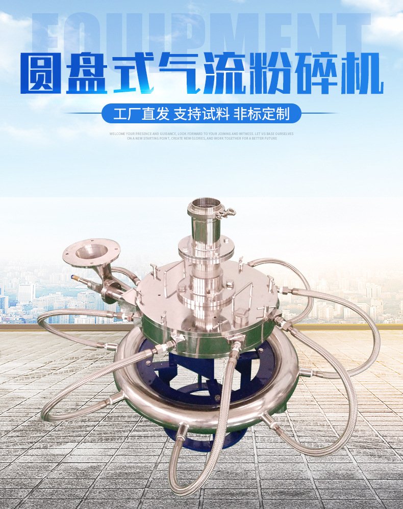MQP圓盤式氣流粉碎機具有適用范圍廣、成品細度高等特點,典型的物料有:超硬的金剛石、碳化硅、金屬粉末等,高純要求的:陶瓷色料、醫藥、電子、電池材料、精細化工等,低溫要求的:醫藥、食品、PVC等。通過將氣源部份的普通空氣變更為氮氣、二氧化碳氣等惰性氣體,可使本機成為惰性氣體保護設備,適用于易燃易爆、易氧化等物料的粉碎分級加工。