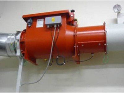 爵格工業化學爆炸隔離裝置的觸發方式與前述的高速隔離閥解決方案相同。在接收到觸發信號后,它們會快速釋放滅火劑到導管中,阻止火焰及燃燒材料在互連的設備間蔓延。在大型導管中,化學爆炸隔離裝置會通過一個 3 寸管徑的管子輸送滅火抑爆劑,而在小型導管中,則會使用一個連接至安裝于支架上的滅火抑爆劑輸送系統頂部的1 寸管徑的管子輸送滅火抑爆劑。
