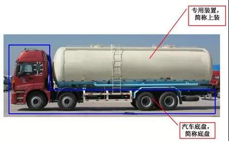 粉罐車汽車底盤和粉粒散裝運輸專用裝置兩部分組成。