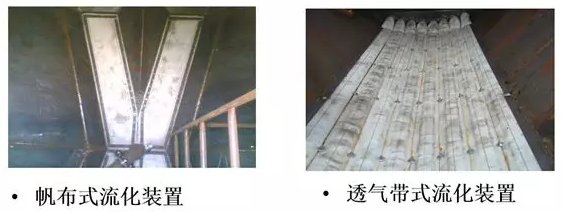 單車采用帆布式流化裝置,半掛車采用透氣帶式流化裝置。