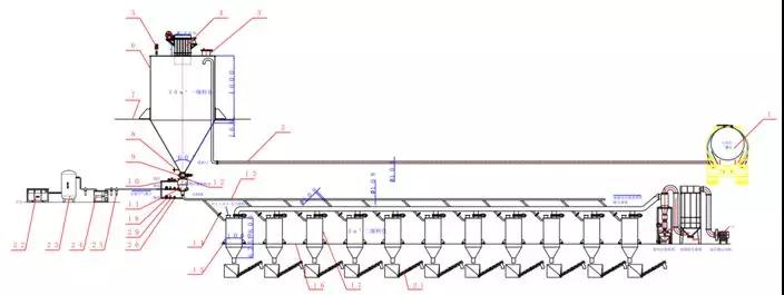 此次項目輸送小蘇打物料采用氣力輸送系統(tǒng),小蘇打槽車(自帶柴油壓縮機及倉泵)內的物料直接輸送至高35米,距離20米-40米的一級料倉內,一級料倉配備料位指示;一級料倉內的小蘇打再經氣力輸送系統(tǒng)輸送至下游的二級料倉內,二級料倉數(shù)量約11個,由需方自備。