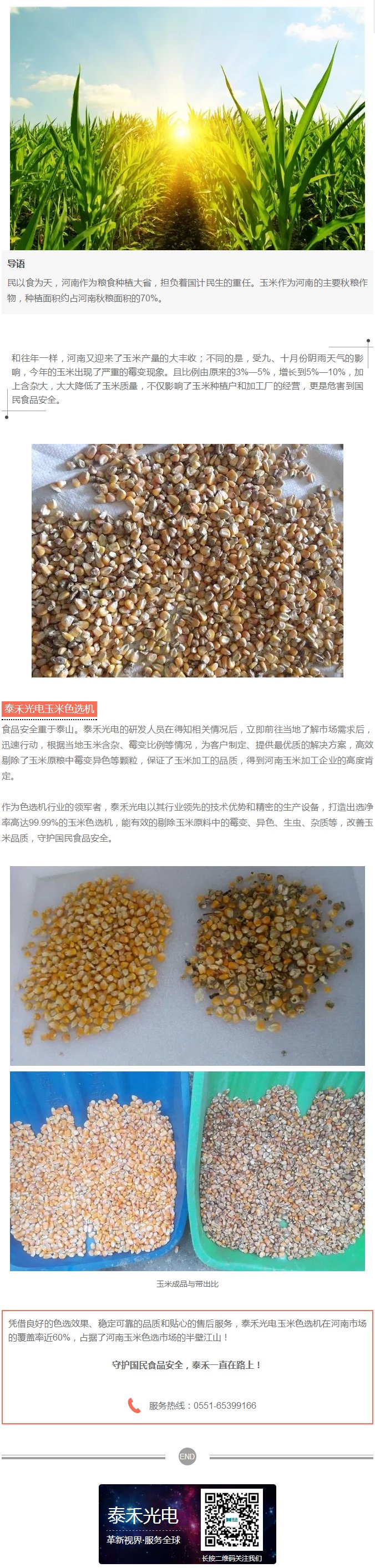 蒼天無情 泰禾有愛--泰禾光電玉米色選機(jī)改善玉米品質(zhì),守護(hù)國民食品安全