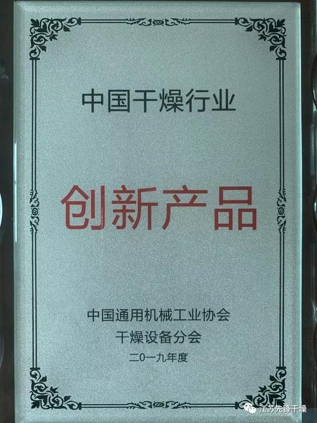 先鋒牌噴霧干燥榮獲中國通用機(jī)械工業(yè)協(xié)會(huì)“創(chuàng)新產(chǎn)品獎(jiǎng)”