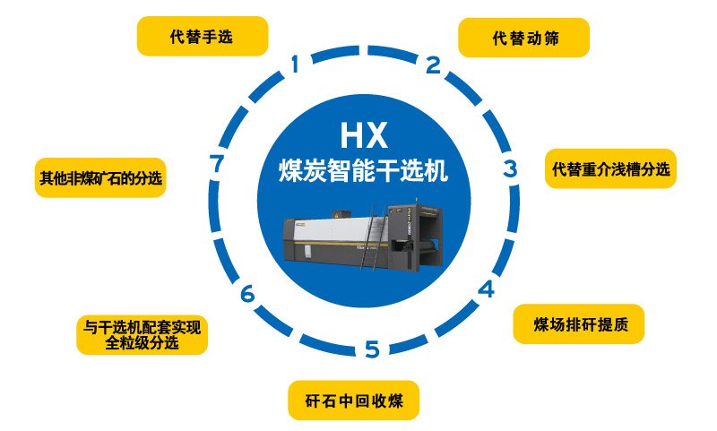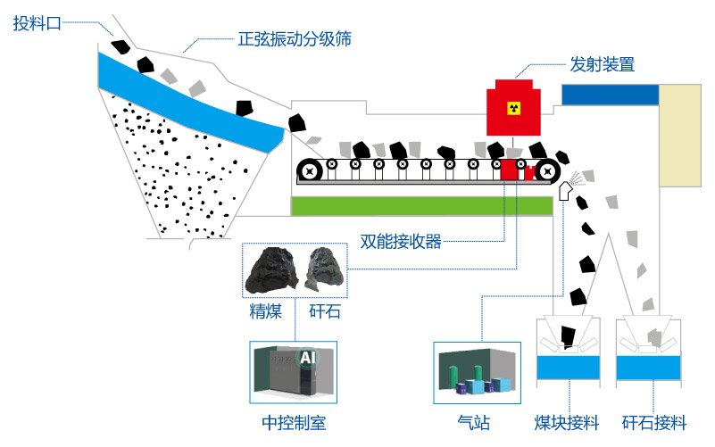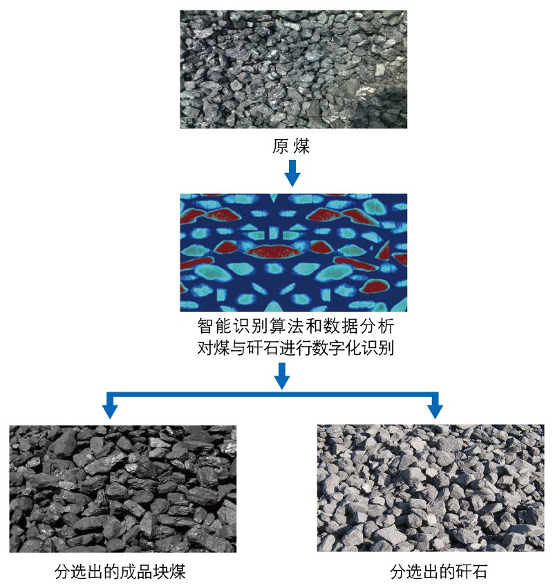 煤炭智能干選機,不但實現了全自動分選,而且具有無人值守、不用水、不用介、不產生煤泥、能耗低、節約水資源等特點,可自動分析識別出煤和矸石,實現全自動原煤分選。