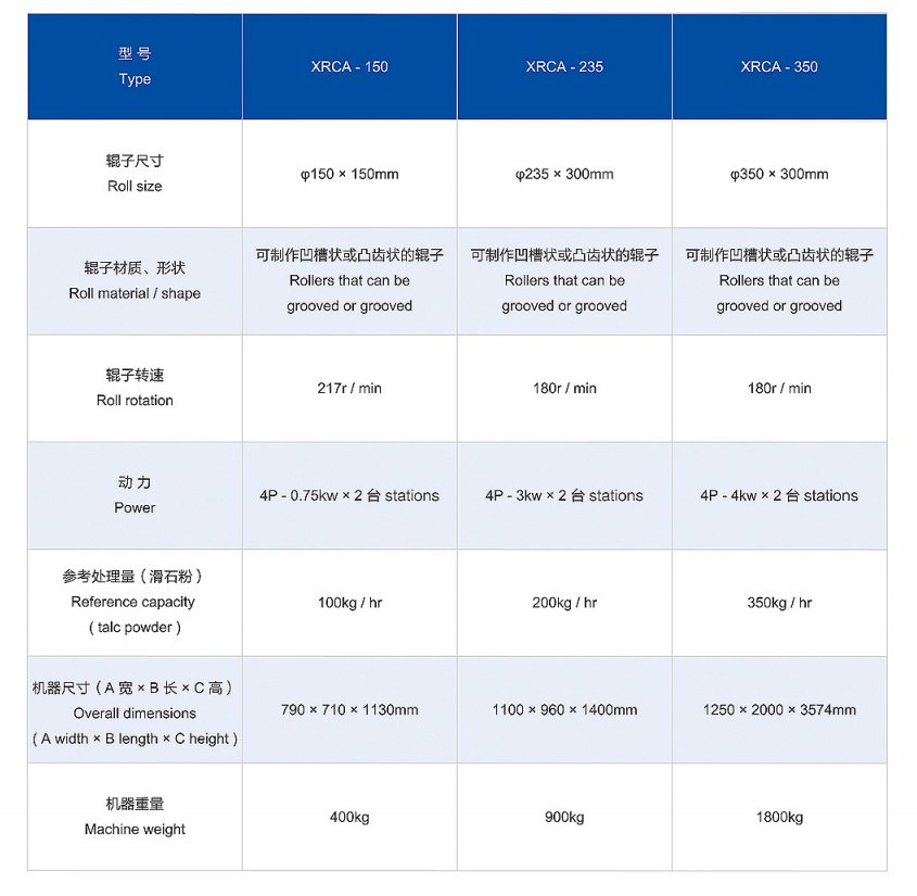 1. 對輥進出料口可制作為快速連接方法,便于和循環性及下游料倉配套