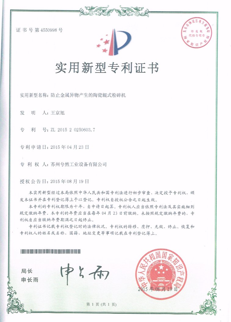 本設備在粉碎過程中,由于使用了陶瓷輥子(凹槽或凸槽形狀)能使金屬雜質值接近于零,也能有效地防止被粉碎的滯留,能夠滿足客戶的要求。