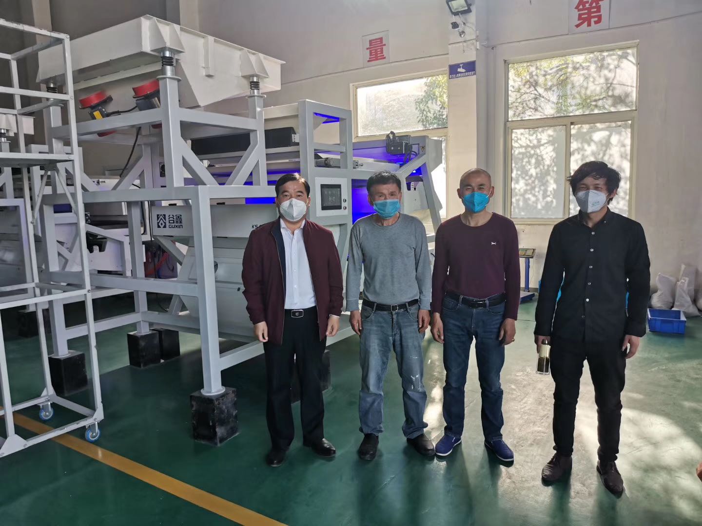 同日,在三臺專車整裝色選機之后,公司董事長桑海博先生又接待了遠道而來的馬來西亞客戶,此次馬來西亞客戶也是慕名而來考察公司及色選設備,經過長期的了解以及考察,客戶堅定了信念,表達了對我們谷鑫色選機的認可并簽訂采購合同,同時對公司董事長桑海博先生的友好接待也表達了感謝!
