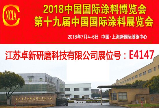ChinaCoatings2018中國國際涂料博覽會將于2018年7月4-6日在上海浦東新國際博覽中心E4館舉行。江蘇卓新研磨科技有限公司應邀參加,展位號:E4147,屆時歡迎蒞臨洽談!