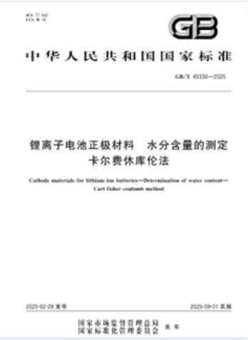 正極材料作為鋰離子電池的核心組成之一,水分含量直接關系電池性能、壽命及安全性。2025年2月,我國正式發布GB/T 45330—2025《鋰離子電池正極材料 水分含量的測定》標準,首次統一鋰電正極材料水分檢測方法,該標準將于2025年9月1日正式實施。梅特勒托利多作為標準的起草單位之一,全程參與了標準編制、精密度驗證等過程。