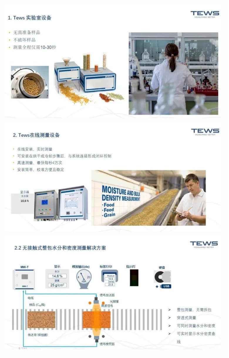 我們的技術工程師結合國內大量客戶案例,總結了以下典型應用: 01烘焙原料與糕點生產(面粉、淀粉、面包糠等) 痛點: 入廠面粉水分波動大,影響配方和最終產品吸水率,導致面團軟硬不一,產品品質不穩定。 TEWS方案: 在投料口或輸送線上安裝傳感器,實時監測 incoming 原料水分,及時調整工藝參數(如加水量),確保每批產品口感一致。同時,為原料按質論價提供可靠依據。 02肉制品加工(肉糜、肉餡、蛋白制品等) 影響出品率、口感和合規性(國標有嚴格水分上限)。 TEWS方案: 在攪拌混合后、灌裝前的輸送線上進行監測。實時數據可聯動控制系統,優化攪拌時間或輔料添加量,在合規前提下精準控制出品率,直接提升經濟效益。 03糖果、零食與方便食品(薯片、擠壓類零食、粉末調味料等) 痛點: 油炸或烘干工序是能耗關鍵點。過度干燥導致能效浪費和口感變差;干燥不足則影響酥脆度和保質期。 TEWS方案: 在烘干機、油炸線出口安裝傳感器,實時監控最終產品水分。數據可直接接入PLC,自動調節烘干機溫度或傳輸帶速度,實現閉環控制,在保證品質的同時,顯著降低能源消耗。 04奶粉及乳制品(奶粉、乳清粉、酪蛋白等) 痛點: 油炸或烘干工序是能耗關鍵點。過度干燥導致能效浪費和口感變差;干燥不足則影響酥脆度和保質期。 TEWS方案: 在烘干機、油炸線出口安裝傳感器,實時監控最終產品水分。數據可直接接入PLC,自動調節烘干機溫度或傳輸帶速度,實現閉環控制,在保證品質的同時,顯著降低能源消耗。 產品推薦 TEWS微波水分儀優勢: 產品表面,核心同時測量 一次校準,簡單穩定,不老化 水分,密度獨立測量(全球獨一份) 產品100%德國制造 01快速而準確的測量方法可節 省時間和資金 食品和原始產物的含水量對于質量、加工和耐久性至關重要。還需要考慮對食品的法律要求。為了保證在所有的制造工藝階段中,產品中的水分含量恰當,就必須持續測量實際產品或其樣品。傳統的水分測量法涉及干燥爐或干燥平衡——一般需要對樣 品進行準備,且始終都會給獲得結果造成延遲: 如果一切順利,會延遲數分鐘,但通常會延遲數小時。 02立即獲得結果 TEWS Elektronik的水分測量儀可立即向您提供結果。測量儀可極其快速地產生結果,且操作簡單,可為您節省大量時間。TEWS的所有實驗室系統和工藝系統均操作簡便,且幾乎完全無需維護。 03無需準備樣品 通過微波共振水分測量法獲得的結果不受被分析產品的密度、堆高或顏色的影響。因此,特別是谷物、含油種子和用原始產物制造的產品中的顆粒大小、顏色、礦物含量等的變化不影響結果。傳統實驗室測量方法的另外一個問題是,需要精確稱量樣品。 東南科儀不僅是設備供應商,更是您的工藝優化伙伴 作為TEWS在中國區的授權代理商,我們不僅提供優質的實驗室儀器測量設備,更擁有一支經驗豐富的應用工程師團隊。我們將: 1. 提供免費試樣分析: 如果您有需要測量的物料,歡迎寄送樣品至我們的實驗室,我們將為您提供詳細的測量報告。 2. 量身定制解決方案: 根據您的具體工藝線和需求,提供最優的安裝與集成方案。 3. 提供本地化技術支持與售后服務: 確保您的設備穩定運行,持續為您創造價值。 水分控制是食品生產“失之毫厘,謬以千里”的關鍵環節。讓TEWS微波水分儀成為您提升產品質量、實現精益生產的可靠眼睛。 歡迎垂詢,了解更多案例詳情并預約免費試樣測試。
