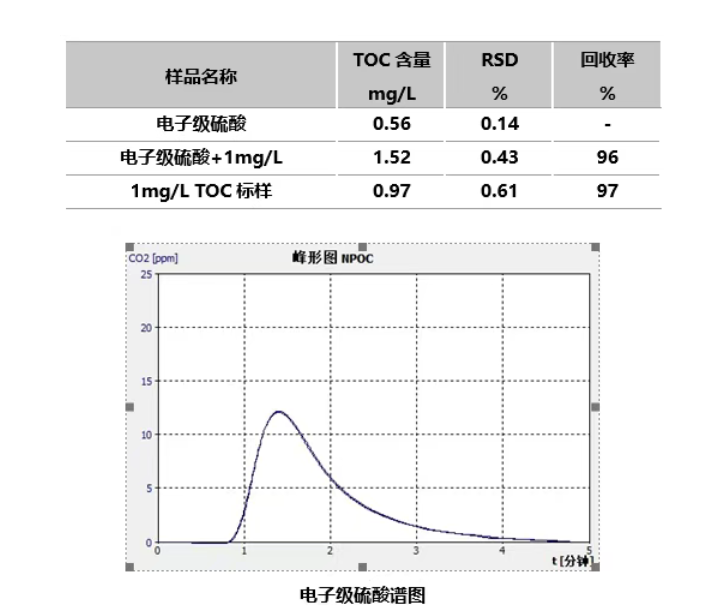 目前TOC分析已在多種電子級濕電子化學品的品控中進行監控,如:硫酸、鹽酸、磷酸、硼酸等各類酸,氨水、氫氧化鈉等堿,及雙氧水等化學品。