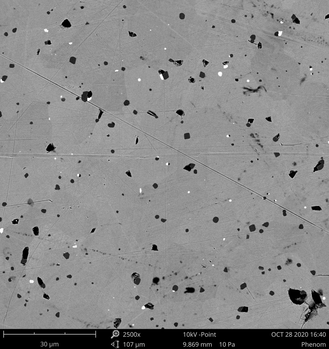 Technoorg Linda 離子研磨儀處理鋁合金表面后,使用飛納臺式掃描電鏡能譜一體機,即刻就能分析鋁合金材料表面的形貌和成分。夾雜是鑄造鋁合金中普遍存在的問題,夾雜物的檢測對于鑄件的質量控制非常重要。