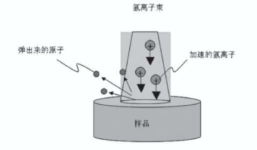 離子研磨實現的過程中,首先通過一個高壓電極來對氬氣進行電離,從而形成氬離子;繼而再通過一個高壓電場來對氬離子實施加速,經過帶有偏轉電場的離子槍頭,使其形成離子束對需要研磨的樣品進行轟擊,將樣品表面物質以原子的形態清除出去,以使得樣品達到無應力研磨的效果。如圖 1 所示。在整個過程中會調整一些參數,例如離子能量,離子束入射角,以優化樣品制備時間和表面質量。