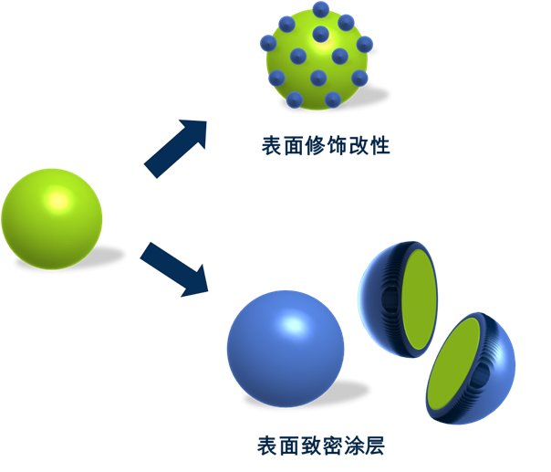 粉末材料尤其是超細粉末相比于塊體以及大顆粒,擁有更優異的光、熱、電、磁、催化等性能,在工業領域也已經得到長足的利用。但粉末材料因為較高的比表面積和成分的限制,存在易團聚,壽命短等缺陷,制約了其應用的發展。為了克服這些缺陷,采用粉體改性的方式可以極大改善材料的性能,而由于大多數化學反應都是在表面界面發生,表面改性則最為直觀的改性手段。