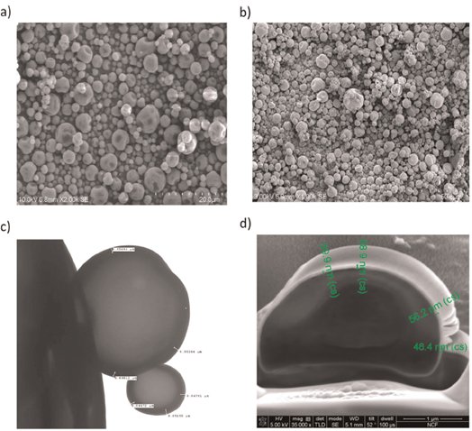 根據掃描電鏡(SEM)測試結果,顆粒的一次粒徑大部分在 4μm 以下,而粒徑測試結果表明較薄涂層包覆后的粉末粒度更小,這說明未包覆的樣品在存放過程中發生了團聚,使粒徑增大。團聚會造成粉末流動性變差,影響分散效果,這對吸入式疫苗的霧化有較為不利的影響。而 ALD 包覆可有效降低小顆粒團聚的程度,促進粉末分散性提升。