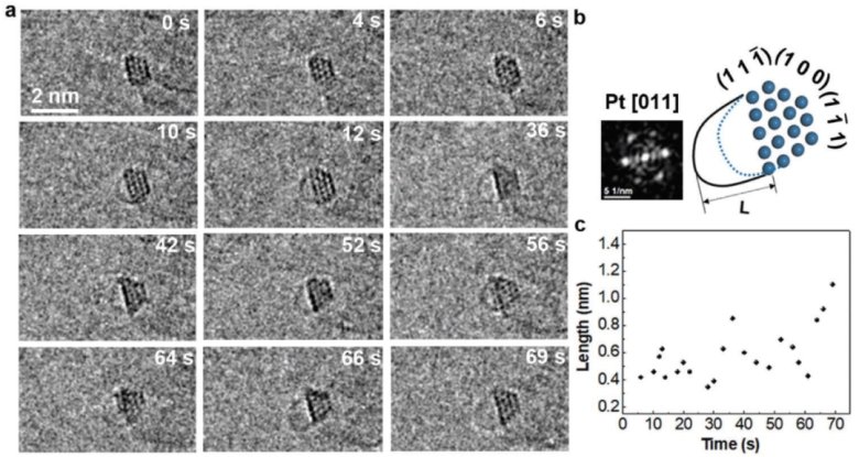 摘要:通過引入局部原子結(jié)構(gòu)變化所獲得的單壁碳納米管(SWCNT)并不是對(duì)稱生長(zhǎng)的,這往往不可避免,且會(huì)對(duì)手性控制和性能定制產(chǎn)生深遠(yuǎn)影響。然而,SWCNT 生長(zhǎng)過程中的對(duì)稱性破壞機(jī)制仍然未知,其原子尺度的起源也無從得知。該工作中,ETEM 用于實(shí)時(shí)捕捉鉑納米顆粒催化生長(zhǎng)的 SWCNT 的對(duì)稱性破壞過程,證明了 SWCNT 側(cè)面形成的拓?fù)淙毕菘梢跃彌_應(yīng)力釋放,并從本質(zhì)上破壞了軸對(duì)稱生長(zhǎng)。原子級(jí)細(xì)節(jié)揭示了納米管-催化劑界面的重要性以及界面周圍固態(tài)鉑催化劑的原子重排如何影響最終的管狀結(jié)構(gòu)。理論模擬證實(shí),負(fù)責(zé)捕獲碳二聚體并為碳摻入和不對(duì)稱生長(zhǎng)提供驅(qū)動(dòng)力的活性位點(diǎn)是低配位的臺(tái)階邊緣。